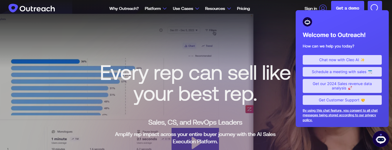 According to Outreach’s 2024 Sales Engagement Benchmark Report, users see a 30% increase in sales productivity after implementation. The platform maintains a 4.3/5 rating on G2.