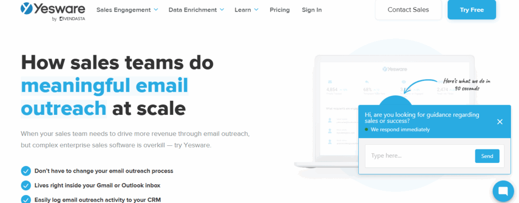 Yesware integrates directly with Gmail and Outlook to provide seamless email tracking. Its focus on sales enablement makes it popular among B2B sales teams.