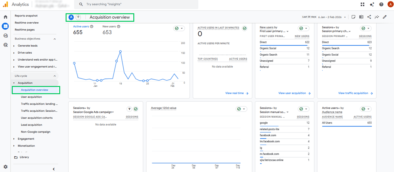 To use Google Analytics for small business, start simple. Set up GA4, track a few key actions (such as forms or purchases), and review basic reports, including Acquisition, Engagement, and Conversions. Using a GA4 dashboard for a small business helps you quickly view key metrics without digging through complex menus.