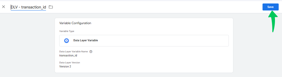 - DLV – transaction_id: Set the Data Layer Variable Name as transaction_id.