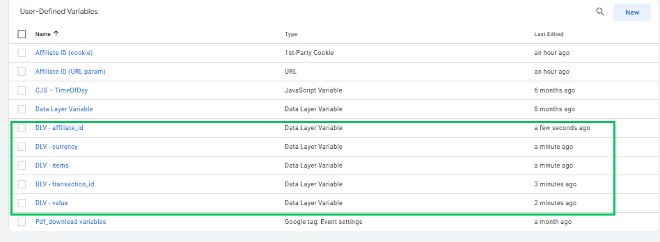 After pushing purchase details into the data layer, you need to create variables in Google Tag Manager so that GA4 can read them.