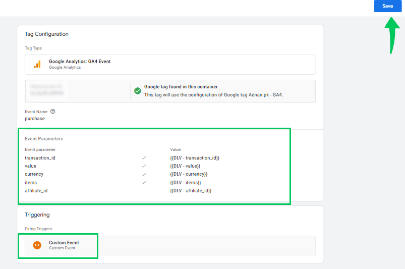 Once your dataLayer variables are set, you need to create a GA4 Event Tag to send purchase data, including the affiliate ID, to Google Analytics 4 (GA4). Follow these steps: