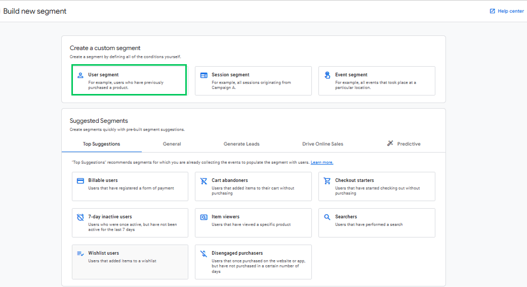 - Choose User Segment.