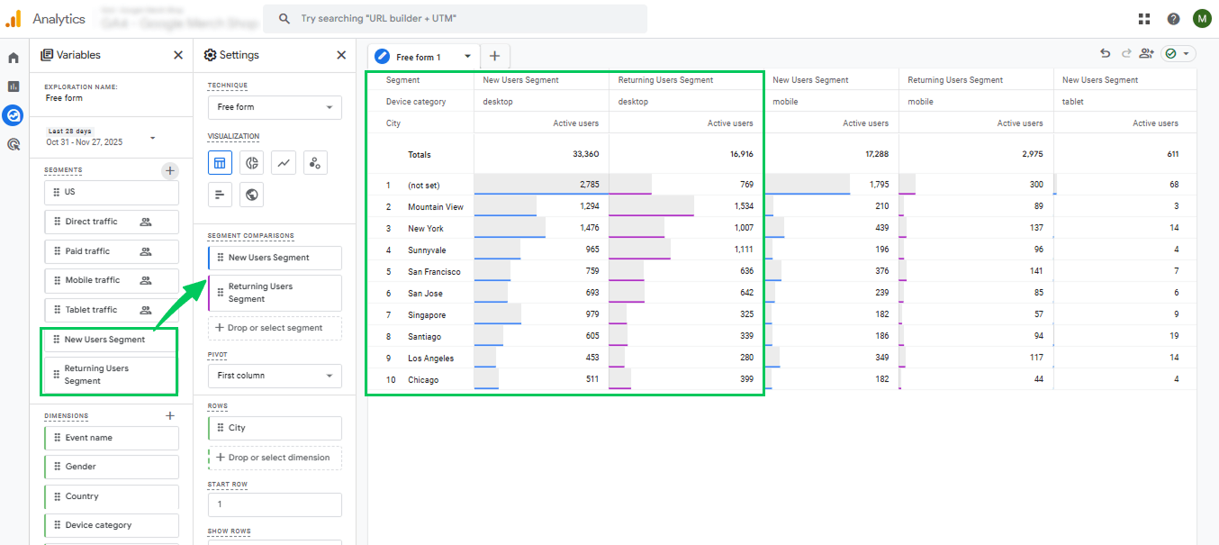 4. Create Segments for New vs Returning Users (Explore Report)