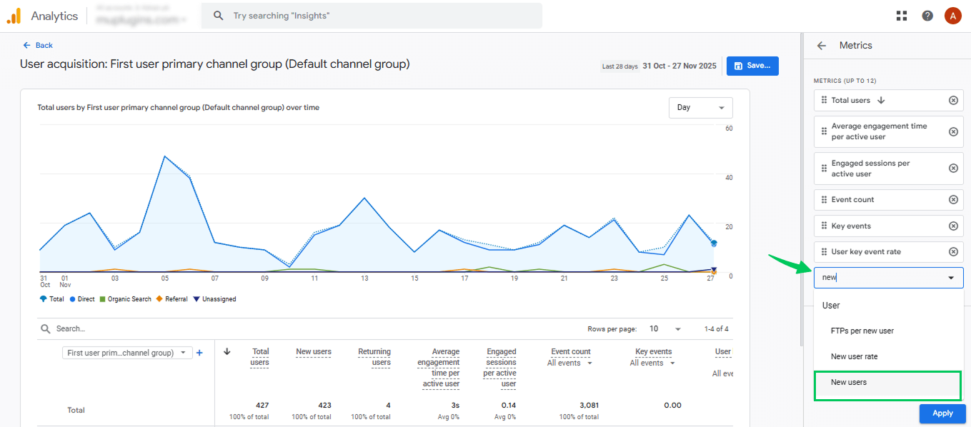 Tracking new vs returning users gives you clear WordPress user behavior stats that show how different audiences engage with your site. New users represent first-time visitors, while returning users are those who come back after their initial visit.