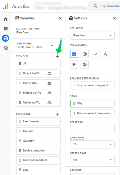 Segmentation gives you deeper insights by allowing you to compare both user groups side by side. To create these segments, follow the steps below: